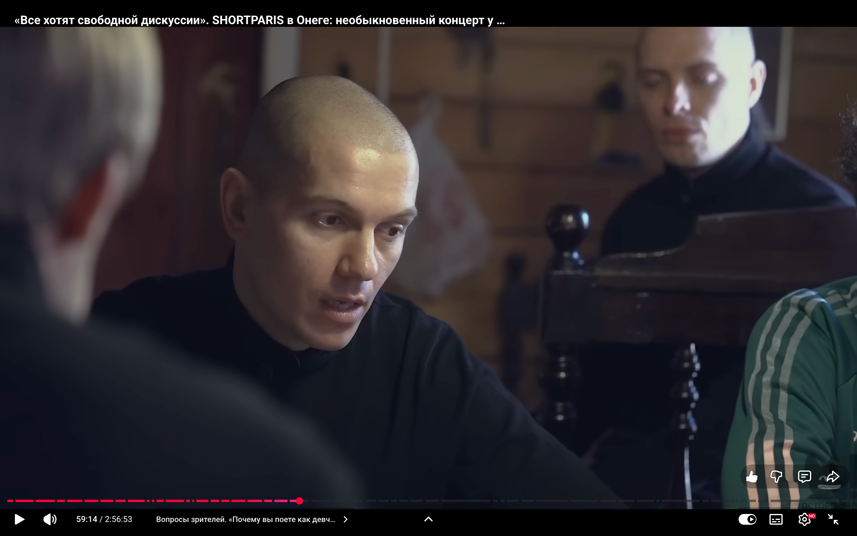 "Но у нас наше государство на протяжении уже столетий возвело эту стену. Мы не можем! Вот это непосредственное общение мы не можем представить. Официоз. Если с нами говорят, то сверху, с позиции такого лекционного монолога, который полностью мою субъектность, субъектность народа вычёркивает" (00:29:45-00:30:00)