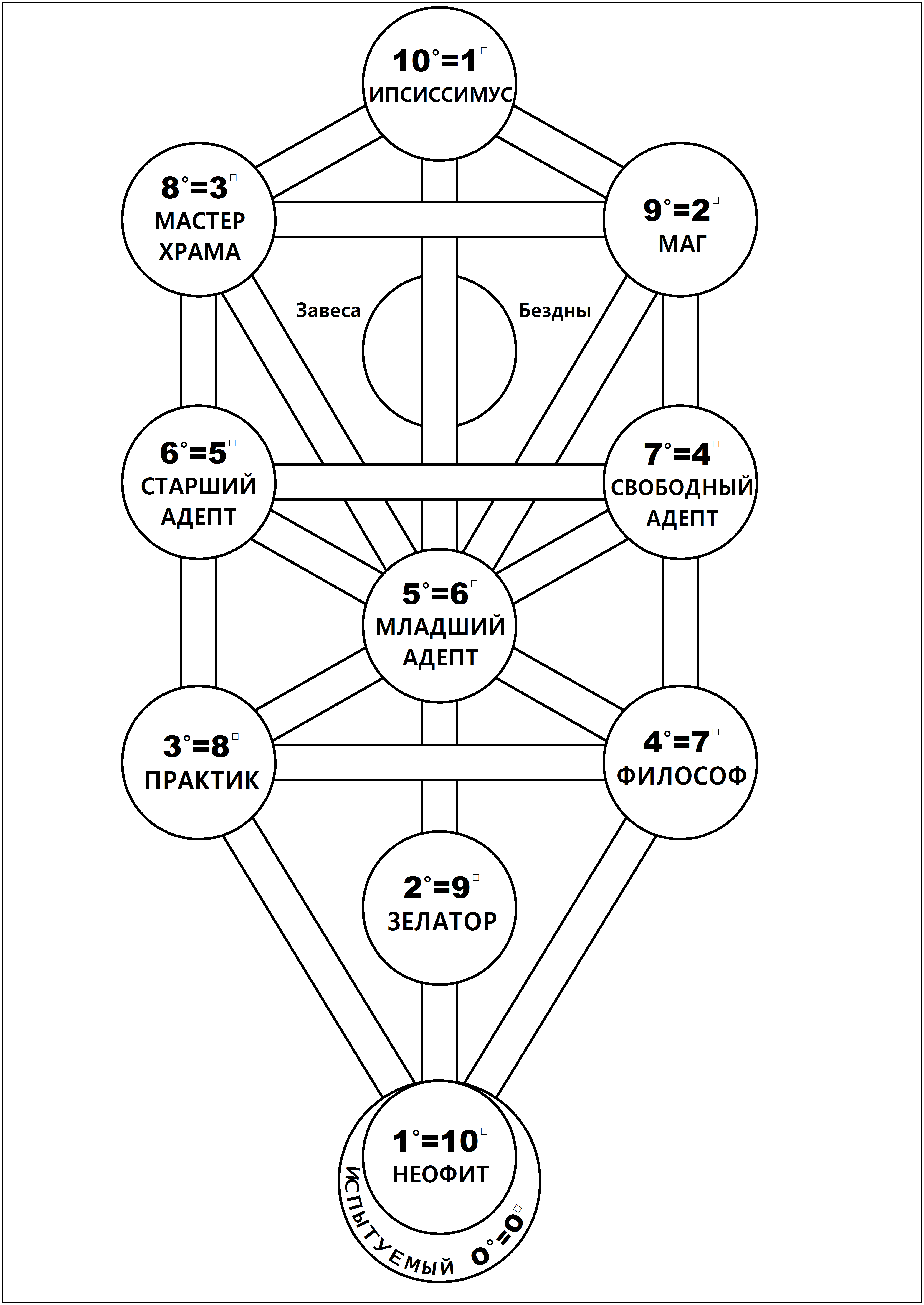 Каббалистическое Древо Жизни, демонстрирующее систему степеней, принятую Кроули в А.'. А.'.