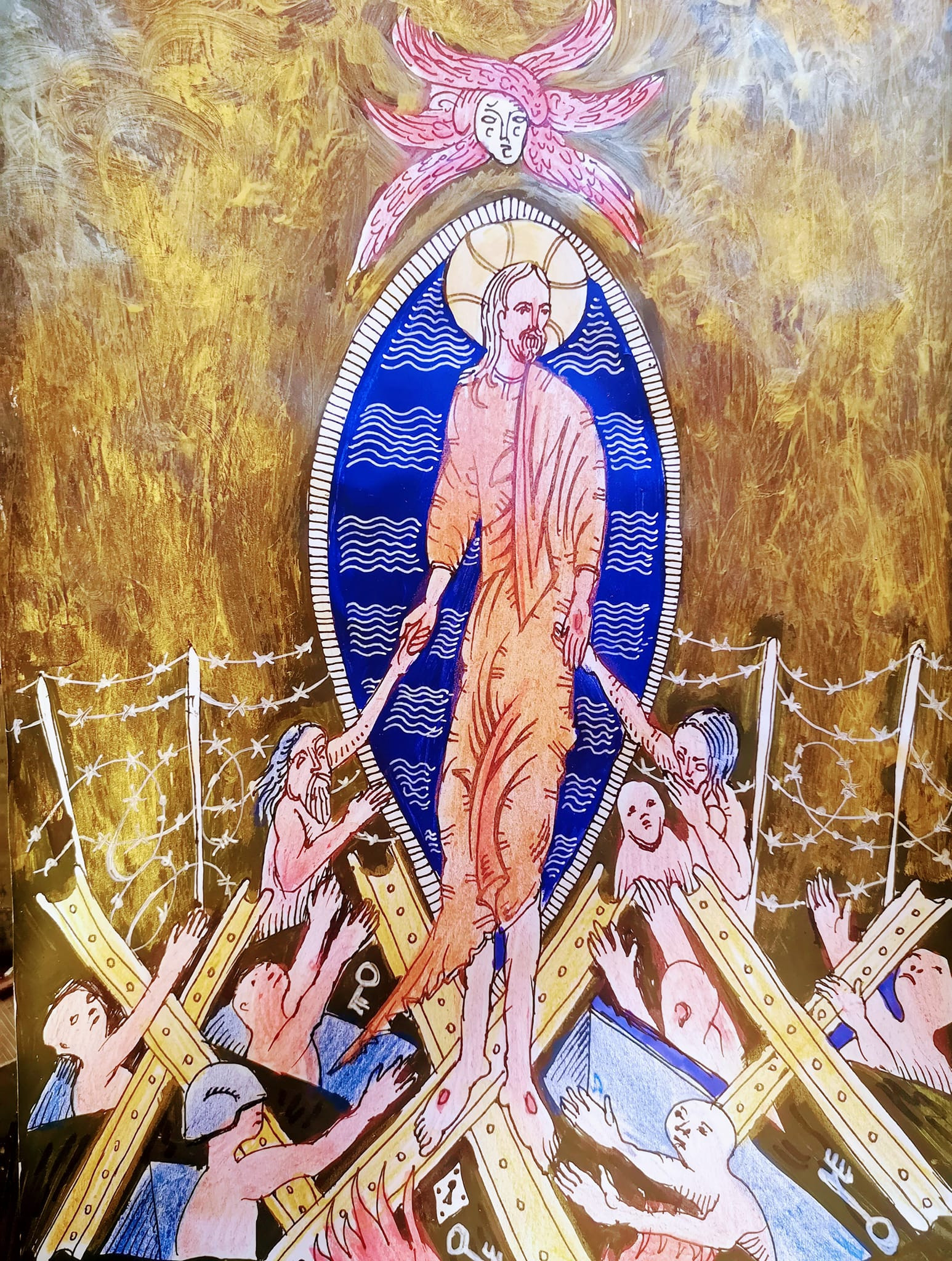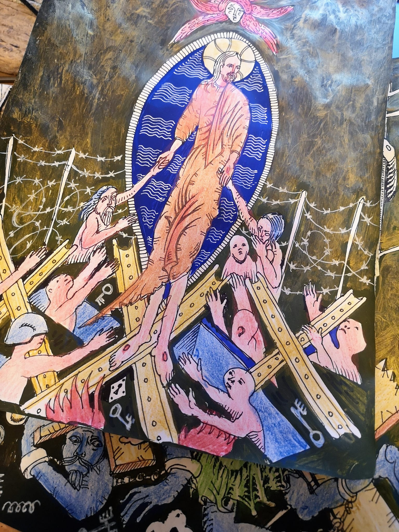 Черный фоновый цвет очень редко используется в иконах, потому что он олицетворяет Адскую бездну. Сошествие! С другой стороны, именно на черном фоне очень хорошо смотрятся ключи, механизмы, белые гвозди, и детали разбитого замка, и всякий другой стальной мусор. Свиридов против Щедрина. "Ставленники" — это те, кого ставят. «Детские альбомчики». Образование — это сильно! Начальное образование — это право, осваивать разные виды гармонии. Там про то, как приноравливаться, пропускать через себя энергии, ну и конечно же, и физические нагрузки. Становление это примериваться и потихоньку ставить себя на место мастера, учиться делать так, чтобы пальцы не скрючились, позвоночник не осыпался, да и мозги не вскипели. Чтобы потенция (где она есть?) не растратилась попусту. Все "наше" надо укреплять закалять «гирьками и противовесами», усиливать и психику тоже. Классическое образование — это когда не травмоопасно, без рывков все учтено, о болезни роста. Поначалу, конечно, немножко все упрощено, и в ритме тренировки, но ничего не упущено. Фильм был такой с Чуриковой "Начало". Про то, как обычный человек, «клуша», «баба яга из самодеятельности», превращается в великую артистку. Стресс. Сцена- а лучше съемочная площадка вот в лучший учитель, потому что одно дело, когда камерно, музыкант за фортепиано, художник за своим блокнотом, а тут — софиты, массовка. Время — деньги. А артистка нервничает, истерит.Героиня в фильме кричит, что у нее ничего не получается? А аренда идет. Героиня кричит, что ей мешают руки? Тогда режиссер говорит: "Ничего страшного, мы сейчас руки отрежем, помощники, несите пилу". Когда девушка видит, что тут все серьезно, вносят пилу, то сразу же у актрисы все как-то налаживается, проходит волнение и с ролью все получается. Взрослого трудно учить приходиться сразу переучивать.Розги, линейки, переломы и их «синяя наглядность». Жестокость это проигранная «в кино-о кино» экстренная ситуация, о том, как из новичка сделать профессионала? Преодолеть, не умея плавать прыгнуть на глубину. Так, чтобы потом вечно жить в истории, жить на сцене. Когда приходится учиться экстренно, это травмообразно.