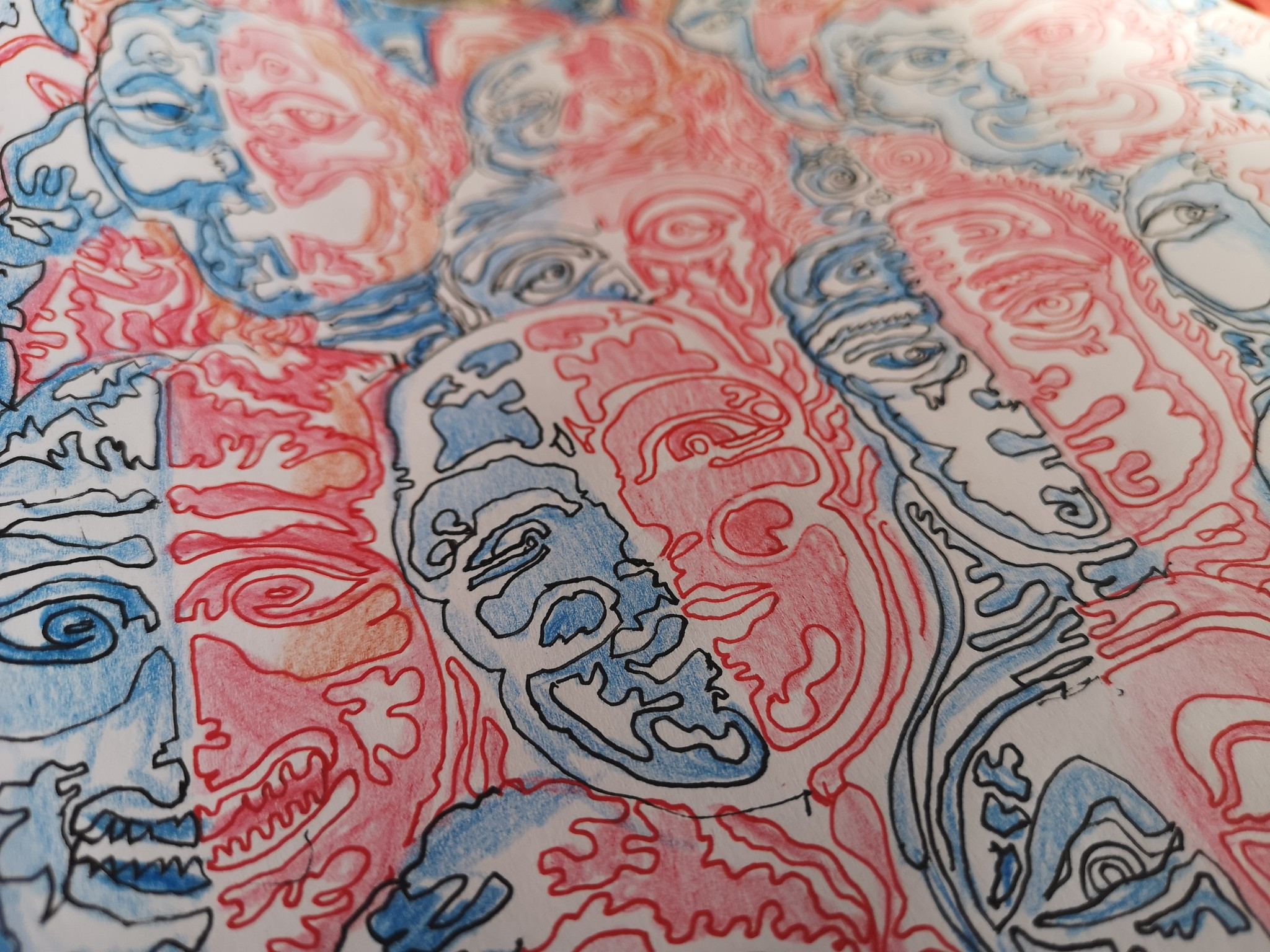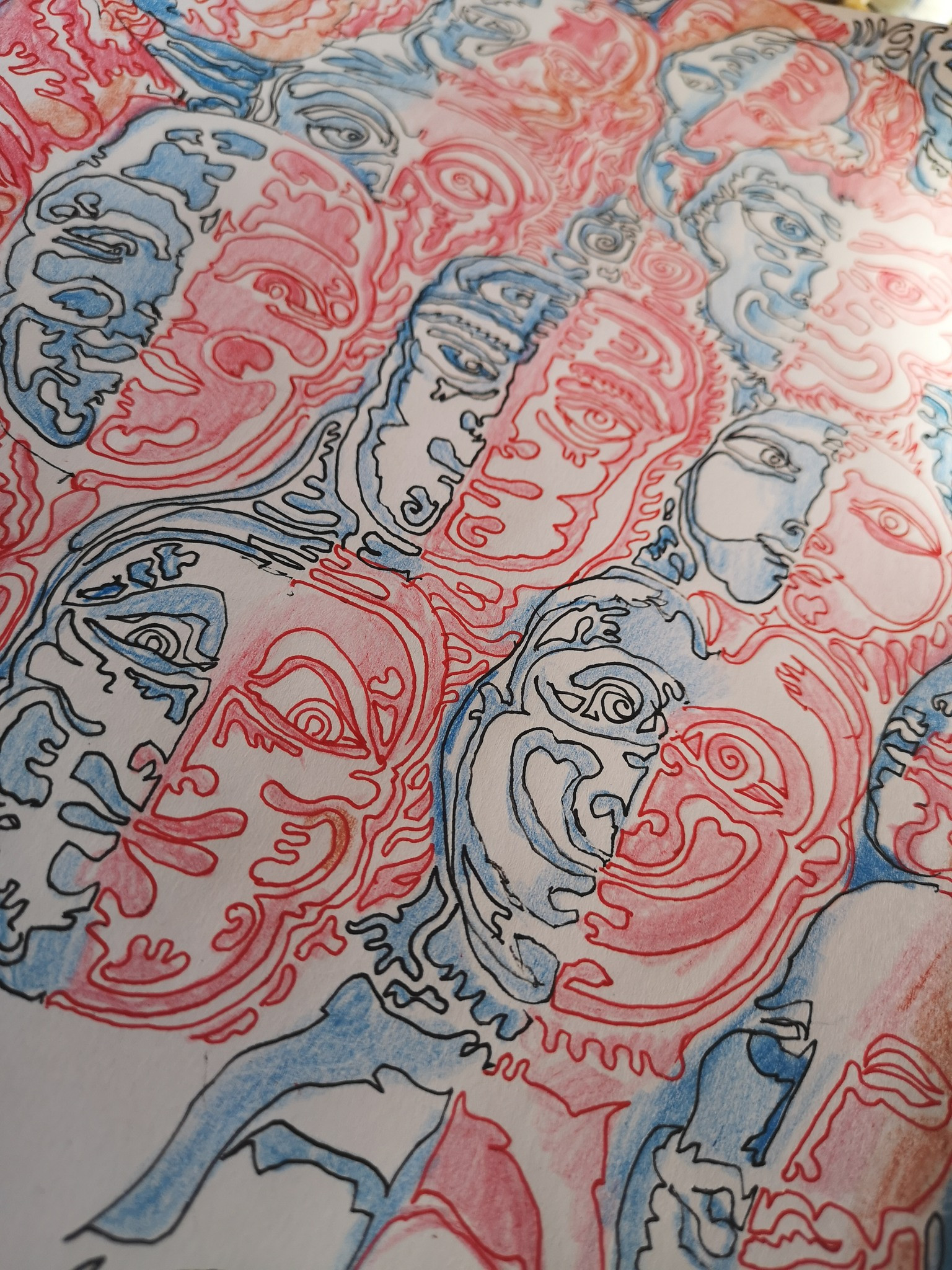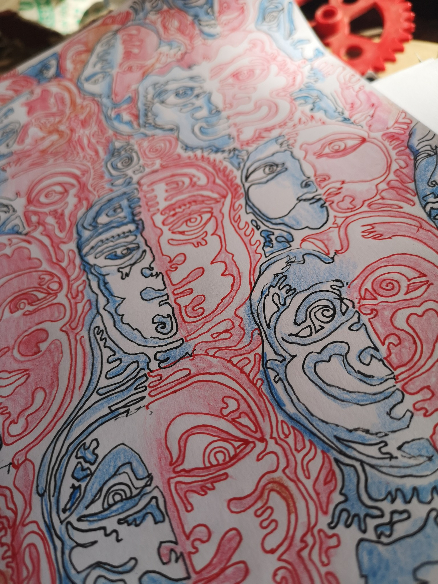 Зарисовки на обгрызенных ногтях. Странное иногда помогает конкретному. Художник Хогарт любил бродить по лондонским улицам и делать эскизы всех тех сцен, фигур или предметов, которые обратили на себя его внимание, — карандашом на своих ногтях. Наконец вместе оказались «те идейки» что притянули на себя его взор, и эти цепкие ногти-царапки «кота-карикатуриста». Целая жизнь на «кончиках пальцев». Пальцы-эскизы мастера сплетаются, так сяк, вот от того картины Уильяма так перемешены героями и мини цепками всевозможных сценок. Было что-то похожее -«Мудры» или жесты с икон, кстати еще из античных времен есть у каждой фаланги пальцев мнемонические значения.Вот вам цепь моих образов- царапок с левой руки.