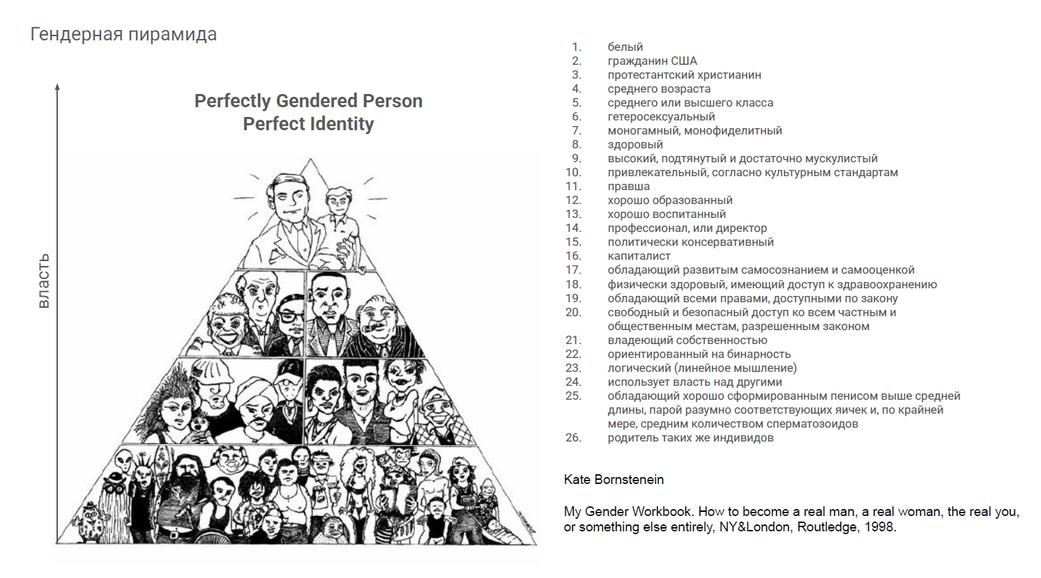 Перевод по: Kate Bornstein, My Gender Workbook. How to become a real man, a real woman, the real you, or something else entirely, NY& London, Routledge, 1998. P. 55-61.