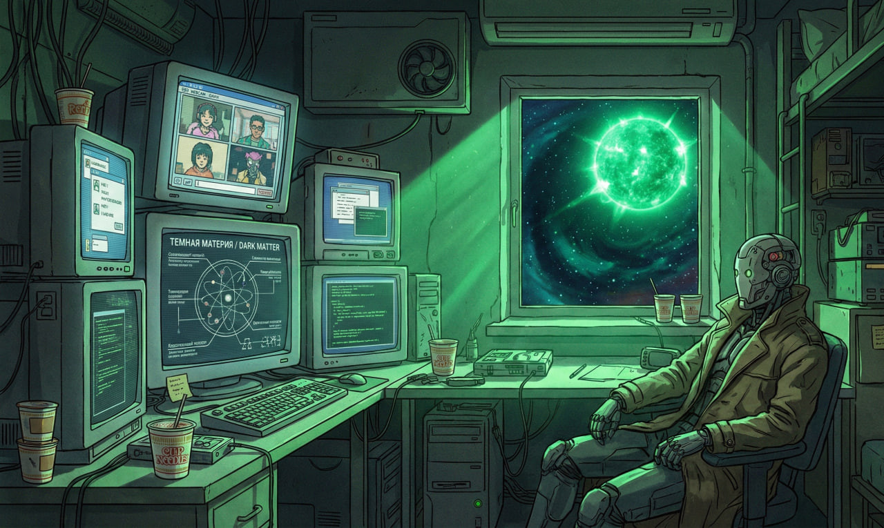 Когда я стал вебкам моделью, один мужчина с ником richard nixon заплатил мне двадцать долларов, чтобы я показал на камеру свои стопы. simpleman и darkstalker84 просили меня делать разные вещи за деньги. И я делал эти вещи, потому что у меня не было чем заплатить долг за воду. Я думал, что мне будет стыдно, но оказалось, что нет: эти деньги тратились на еду, а ещё я откладывал на поездку с дочкой в Эйлат или Еворопу. В обычной жизни я работаю в магазине, то есть тоже в сфере обслуживания, а до этого я мыл туалеты. Просто я понял, что совсем неважно, что ты делаешь руками, чтобы заработать на жизнь: убираешь душевые кабины в общаге или трогаешь член на камеру. В конце концов, наши тела нам не принадлежат, как рассуждал Фуко. Так что любая работа — это, по сути, вебкам. Особенно сейчас в эпоху зума. Обычно richard nixon писал мне, как и в каких позах он бы занялся со мной сексом, но однажды в приватном чате ричард рассказал совсем о других вещах. Сначала, правда, никсон попросил меня скинуть фотографию ануса (сто долларов), а после поделился деталями своей жизни. Оказалось, что мой собеседник изучает физику элементарных частиц в секретном университете NASA и ЦРУ в Алабаме. Он сказал, что на самом деле наша вселенная почти на треть состоит из тёмного вещества, которое не регистрируется никакими приборами. И вообще, учёные давно обнаружили внеземную жизнь, и она скоро нас захватит. С Альфа-Центавры уже движутся инопланетные корабли. Всё это зашифровано в тайной финальной серии «Очень странных дел», запрещённой к показу. Я, конечно, подумал, что это полный бред, но недавно я действительно заметил над морем маленькую зелёную звезду, которой вроде бы никогда раньше не было в этом участке неба. Я сразу вспомнил, как account_225679 заплатил мне за двадцать отжиманий. Пот капал со лба, несколько капелек повисли на стёклах моих очков, и в свете компьютера они преломились, как капли изумрудного стекла — в точности как та звезда. Кстати, про тёмное вещество (dark matter) я знал и раньше. Подсчитано, что звёзды на краю галактик вращаются слишком быстро. Хотя, чем дальше они находятся от центра, тем с меньшей скоростью должны двигаться вокруг него. Так, планеты далёкие от Солнца делают оборот вокруг него медленнее, чем, например, Меркурий. Однако доказано, что светила на кончике спирального хвоста галактики вращаются слишком стремительно, как будто рядом с ними расположено некое материальное скопление, недоступное для исследователей. Невидимые тела, которые не взаимодействуют со светом. Тела, не испускающие излучения, не создающие электромагнитных колебаний. Абсолютно неразличимые, немые тела, летящие в пустоте. Незамеченные пользователем по ту сторону экрана. Выброшенные за границу истории.