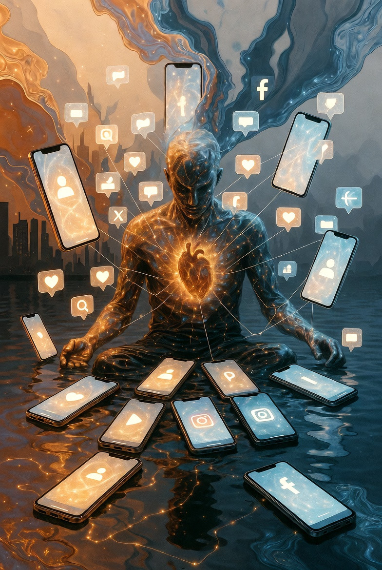 3. Цифровизация и иллюзия связи: Цифровые платформы являются идеальной сценой для расцвета текучей любви. Социальные сети, приложения для знакомств и даже приложения для «цифровых друзей» обещают безграничную связь, но на самом деле усиливают динамику отчуждения. Бауман описывает «виртуальные отношения» как «легкие для вступления и выхода из них. Они кажутся элегантными, чистыми и простыми в использовании по сравнению с тяжелыми и беспорядочными реальными вещами»⁵. Приложения для знакомств превращают потенциальных партнеров в «профили», которые быстро оцениваются и пролистываются, усиливая менталитет покупателя и снижая ценность человека до простого изображения и набора характеристик. Социальные сети, в свою очередь, создают пространства для социального перформанса, где индивиды демонстрируют идеальные, отредактированные версии своей жизни, что усиливает чувство неполноценности и сравнения и делает построение реальных отношений, основанных на честности и уязвимости, еще более трудным.