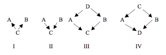 Рассматривая только бинарные переменные, Райхенбах говорит, что в структуре I, в случае общей причины, A и B не являются независимыми друг от друга в отношении C (вероятность каждого из них выше при C, чем при ~C), но A и B независимы друг от друга в отношении C и ~C. Он ошибочно утверждает, что эти факты не отличают I от II и действительно характерны для таких причинно-следственных структур, как II. Используя пример со структурой III, он пишет: «Например, извержение гейзеров может привести к образованию двух облаков, которые сливаются в одно большое облако. Тогда появление этого большого облака является следствием E, которое удовлетворяет [вероятностным свойствам I]». Это важная ошибка. В структуре III, представляющей причинно-следственную структуру примера с гейзерным облаком, A и B являются независимыми при условии D, но почти для всех вероятностных распределений A и не являются независимыми при условии C и D. То есть III подразумевает (почти для всех распределений вероятностей), что ни A, B, C, D не являются независимыми, что A, B являются независимыми при условии D и что A, B не являются независимыми при условии C или C, D. Если направления рёбер в III поменять местами, как в IV, то сохранятся те же соотношения, но C и D поменяются местами. Таким образом, направление причинно-следственных связей между извержением и образованием большого облака закодировано в соотношениях условной вероятности. Райхенбах искажает эти соотношения. «…Если существует конъюнктивная вилка по отношению к общему эффекту E [как в структуре II, где E заменяет C], то одновременное возникновение A и B более вероятно, чем простое случайное совпадение. Следовательно, если бы не было общей причины C [D в структуре III], то общий эффект установил бы статистическую зависимость между A и B, и объяснение было бы дано в терминах «конечной причины». …мы считаем, что конечные причины несовместимы со вторым законом термодинамики, и считаем такие разветвления невозможными… это означает, что принцип общей причины не исключает статистическую зависимость в отношении общего следствия, но исключает такую зависимость, если не существует общей причины». Таким образом, Райхенбах, по-видимому, считает, что в случае II, приведённом выше, A и B являются независимыми при условии C, но в случае III A и B являются зависимыми при условии C и отсутствия D. Непонимание Райхенбахом этих моментов вполне объяснимо — вплоть до 1990-х годов от нескольких статистиков можно было услышать примерно то же самое. Чтобы увидеть правильные соотношения, Райхенбах должен был бы явно сформулировать факторизацию совместного распределения для бинарных переменных, которая подразумевается в других его рассуждениях, и вычислить совместное распределение независимых причин при условии значений общего эффекта. Он этого не сделал. С другой стороны, в линейных системах легко вычислить частичные корреляции причин с учётом эффекта, но Райхенбах, несомненно, не знал этих формул. Далее он приводит пример «экранирования» и определение «причинно-следственной связи» для событий. В качестве примера он приводит причинно-следственную цепочку ABC. A и C являются независимыми при условии возникновения B. Он не говорит, что «экранирование» требует, чтобы A и C также были независимыми при условии ~B, но его формулир