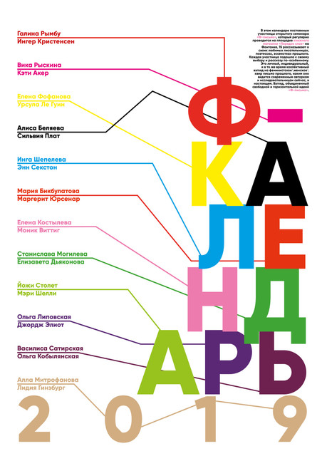 Ф-Календарь не просто великолепно оформлен (Дарья Ширяева, спасибо!), но и заслуживает внимательного чтения. Вы узнаете не только знакомые вам имена (например, классических авторесс Мэри Шелли и Джордж Элиот), но и более близких к нам современниц (Урсула Ле Гуин и Моник Виттиг), а также наверняка познакомитесь с новыми, неизвестными вам авторками. И возможно, узнаете что-то о тех, кто составлял этот далеко не полный список женщин, творивших свою литературу.