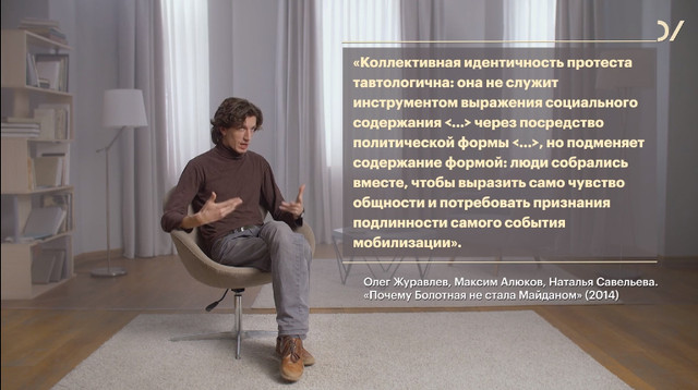 И вот эта часто критикуемая социологически «пустотность» (само)отсылки или самообращенности, привлекающая к самому факту или ситуации своего высказывания на самом деле действительно интересна не своим содержанием (политической программой), но своей формой (дейктической), которая возможно точнее очерчивает сегодняшний горизонт политического, чем все прежние «содержательные» лозунги. Такая грамматика протестной речи отчетливо отсылает к критике политической репрезентации и всего словаря политических дескрипций (либерализма, социализма, etc). Участники не готовы называть себя прежними названиями, поскольку не ощущают их наполнения. Даже Ленин настаивал на том, что его партия должна сменить название и стать не