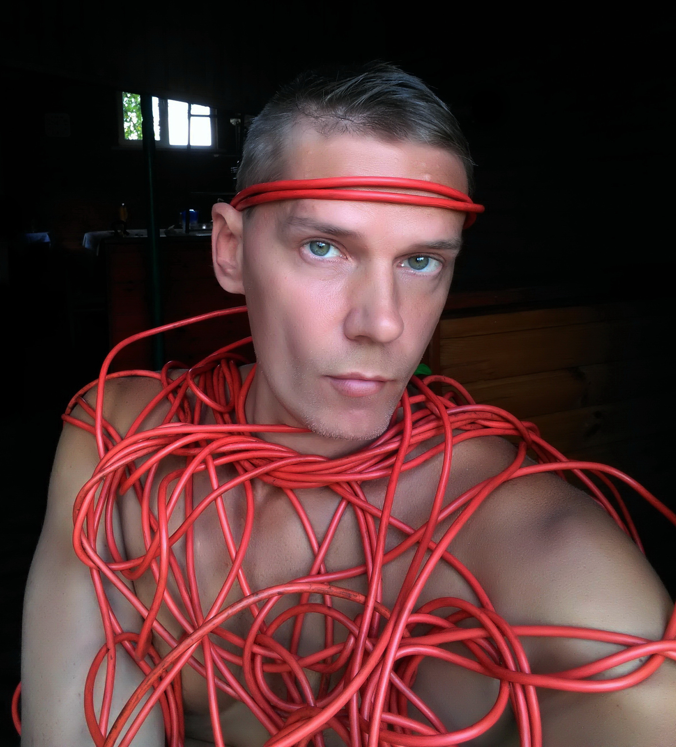 Что пылесос высосет первым — душу, её концепт или пустоту? Работая с телом, важно не забывать — оно тоже текст. Это таймерное селфи: я сижу перед окном, опираясь руками на раму, во рту зажат зубами пылесосный шланг. Art везде, если он в тебе.