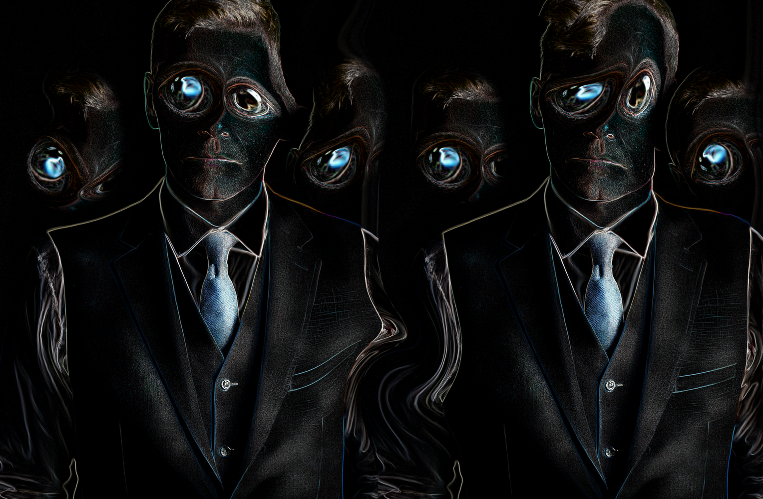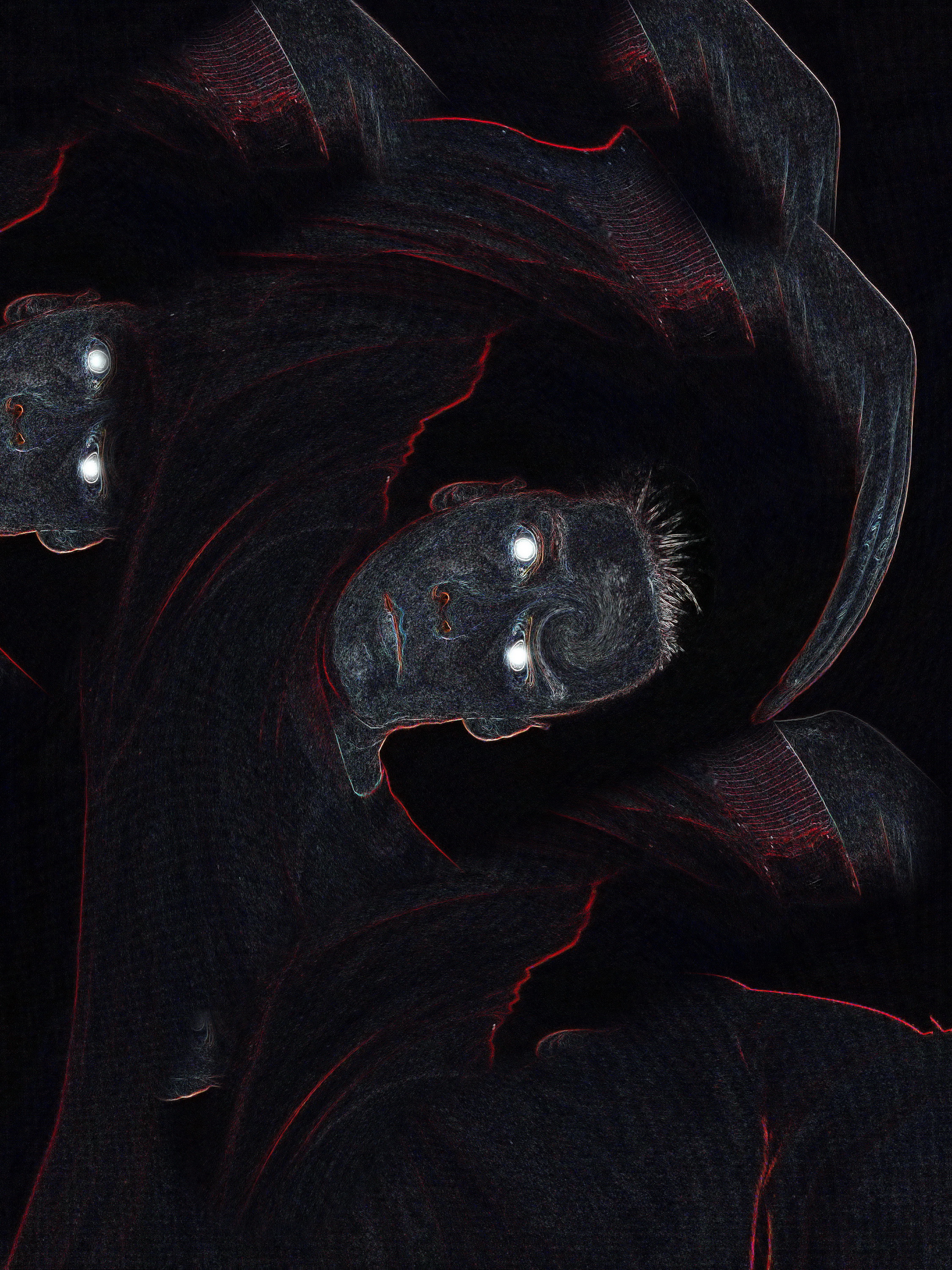 Кажется, что одно-единственное фотолицо, разбросанное по всей площади art-материала, меняет своё выражение в зависимости от случайных условий статического бытования. А может, уже и не кажется.