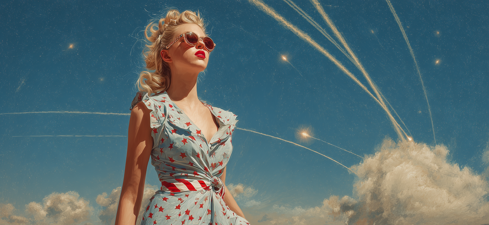 Когда ракеты прочерчивают своими сияющими хвостами ночное небо.